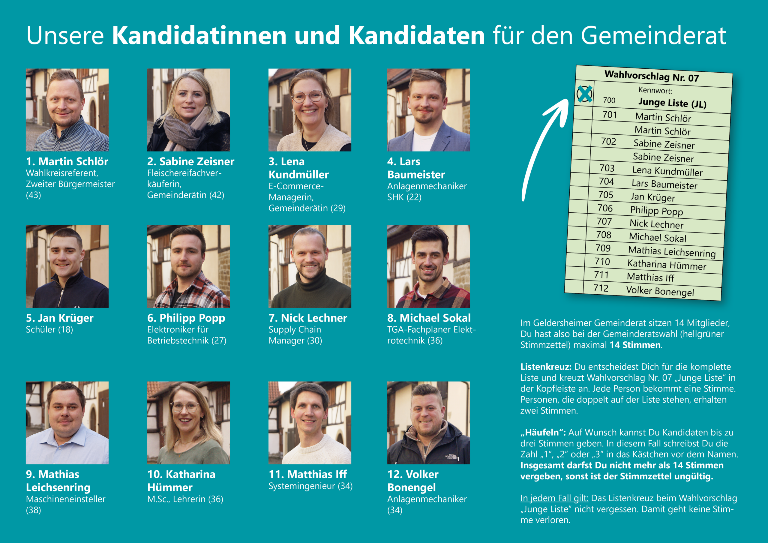 Am 8. März 2026 ist Bürgermeister- und Gemeinderatswahl in Geldersheim.